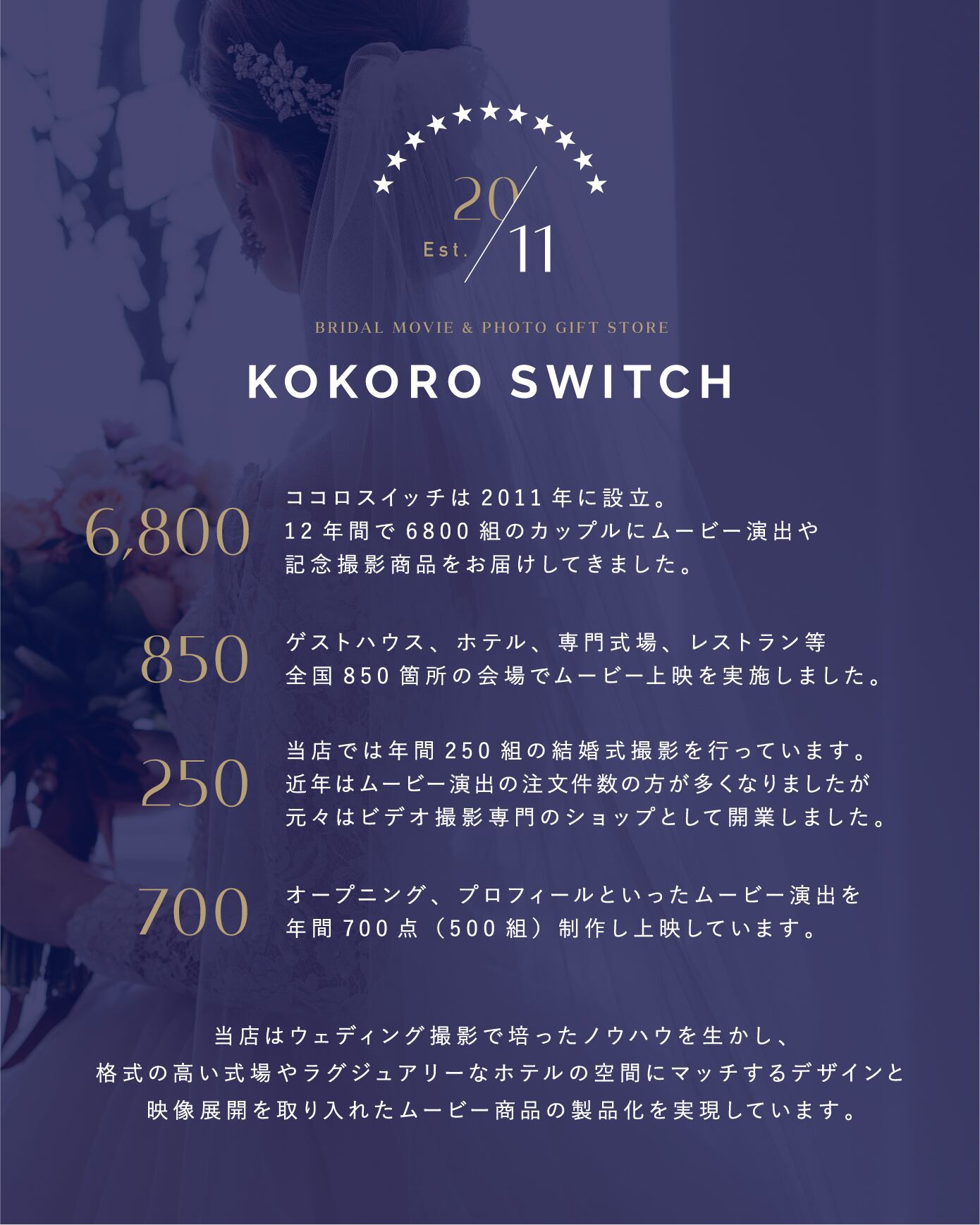 前撮りの衣装や式場の空間デザインに合わせてオーダーメイド感覚で設計できる、最新型オープニングムービーです。