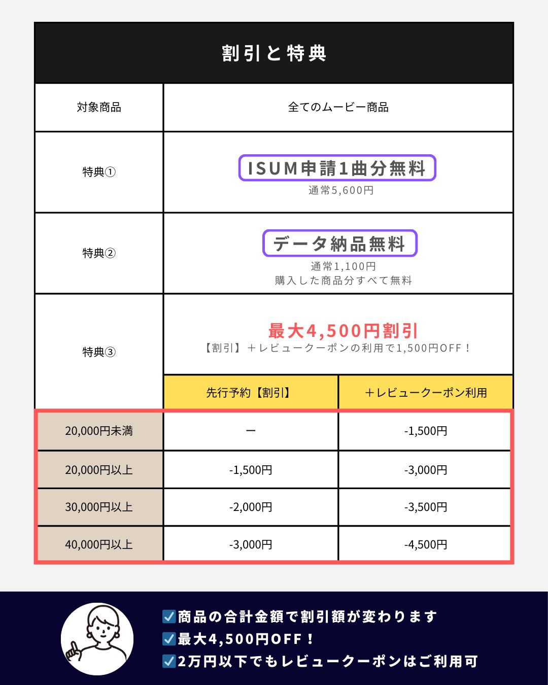 特典①ISUM申請1曲分無料(通常5,600円)